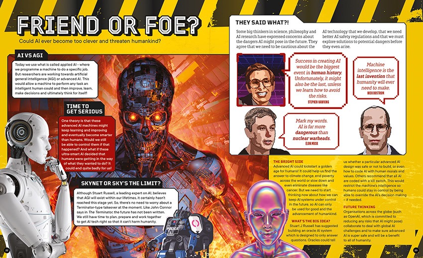Did you know that English engineer Professor Kevin Warwick became the world’s first cyborg in 1998? Plug in and explore a dawning digital age of sophisticated robots and advanced AI. This visually stunning science guide looks at the key questions and stunning innovations around robotics and AI, including how robots are revolutionising fields like medicine, space exploration, emergency response, farming and entertainment, plus nanobots, cyborgs and much more!