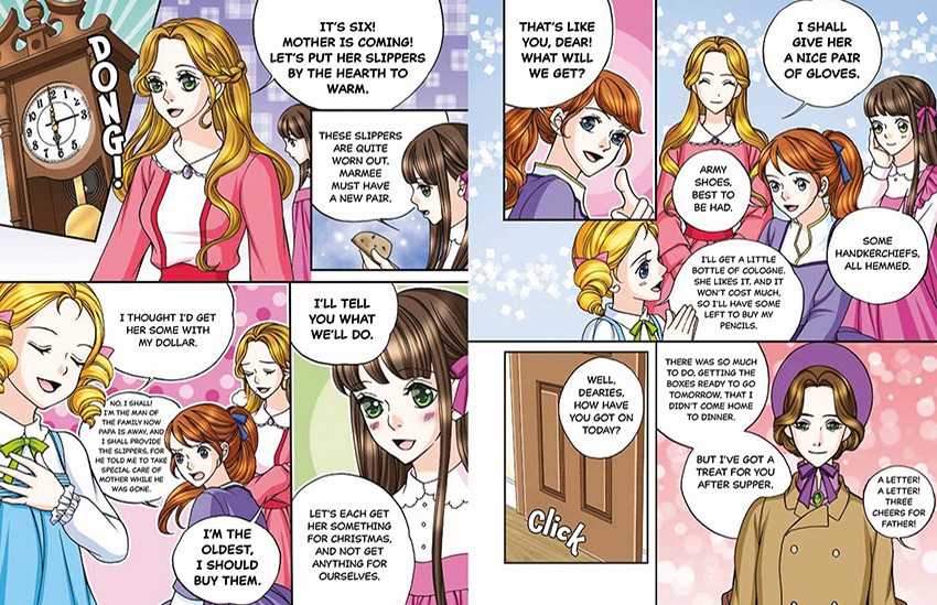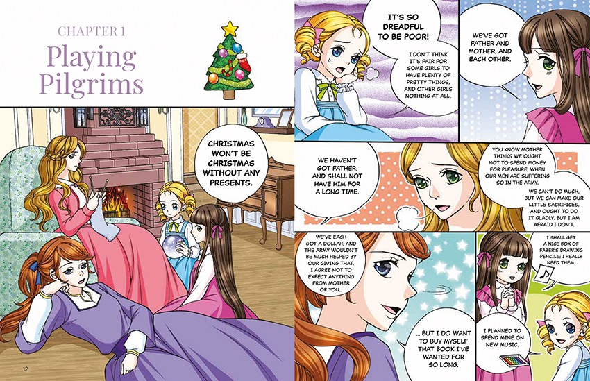 Manga Classics: Little Women brings a classic coming-of-age story to life as a comic book. Enter the cozy, creative and colorful world of the March sisters as they each negotiate the path from childhood to womanhood. Meet beautiful, traditional and kind Meg; Jo, the rebellious tomboy writer; gentle and shy peacemaker Beth; and feisty artist Amy, the baby of the family. The girls live in Massachusetts with their adored mother Marmee, in genteel poverty, while their father is far away fighting in the American Civil War. As the story unfolds, the girls meet new characters and must face the challenges and opportunities life will hold for them, including marriage, work, domesticity and education.